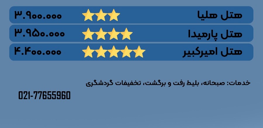 برای اطلاع بیشتر از جزییات و رزرو با ما تماس بگیرید
